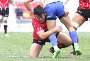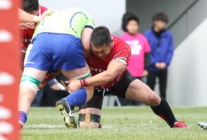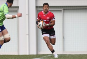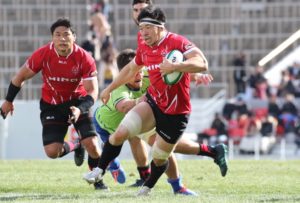 32分日野、NEC陣右Sから展開し連続攻撃、ラックから⑨橋本㉑村田⑧堀江がトライ。G成功7点