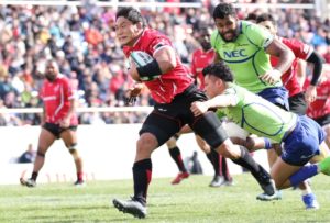 21分日野、NECのキックを⑭ペニーがカウンターでビッグゲイン⑤クリシュナンがトライ。G成功7点