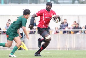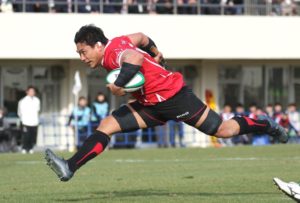 42分日野、トヨタ陣中央付近Sから展開。ラックから㉑古川⑮カカがトライ。G失敗。5点