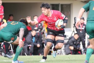 ▼2試合連続トライ!の堀江は体を張ったプレーでチームを引っ張る