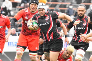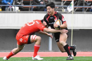 日野のペナルティーキックがノータッチとなり、神戸にキックカウンターから一気にトライを許してしまった。
