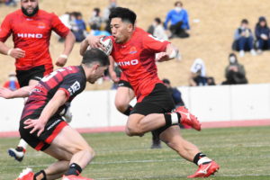 前半、風上の日野は相手のミスにも助けられピンチを防ぐがペナルティやエラーから得点に結びつけつことが出来ず。三重ホンダに先制トライを許すがすぐにトライを奪い返し食い下がった。しかし、前回の対戦同様にペナルティから失点を許しリードを拡げられた。後半、得意のラインアウトからのモールを押し込みトライ!ゴールも成功させ逆転!リズムを掴みかけた日野だが、またしてもペナルティから得点を許し逆転されると、その後は三重ホンダの準備された攻撃に防御網を突破されトライを許しリードを拡げられた。日野は終盤にスクラムから展開し㉒東郷が意地のトライを挙げ自らゴールも決めて1点差まで追い上げたが『無念』のノーサイド!