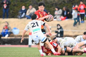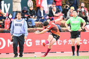 21分、日野 22m左、ラインアウトから連続攻撃、ラックから⑨橋本⑥中鹿と繋ぎトライ!5点G成功2点
