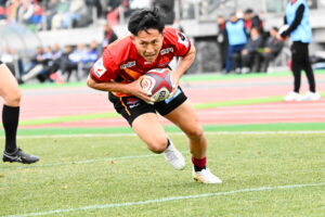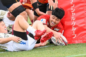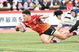 16分、広島 ゴール前中央、⑩パスカットから約100mを走り切りトライ 5点G成功2点