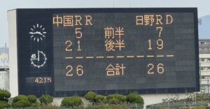 一番乗りで「ディビジョン2『昇格』」を達成した日野は、ホームの声援を受けてものすごく闘志を燃やしている中国電力レッドレグリオンズ(以下 中国)と対戦しました。