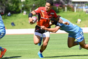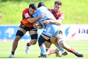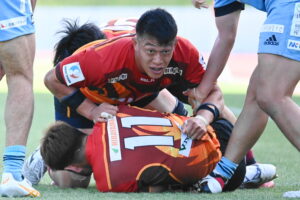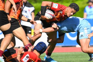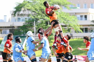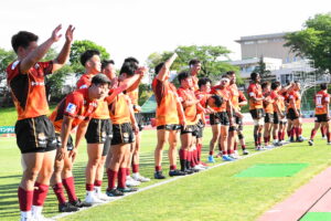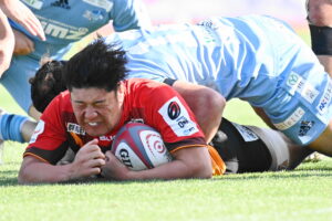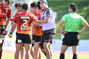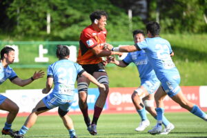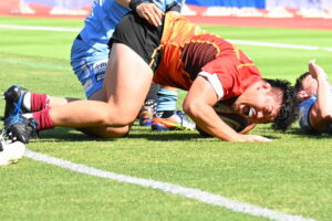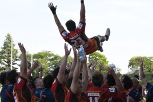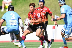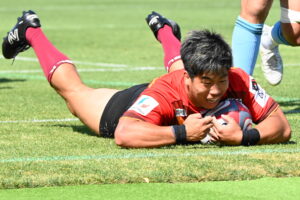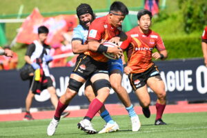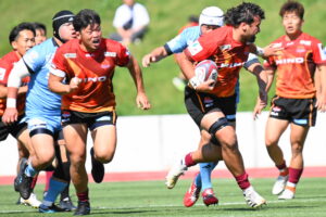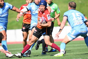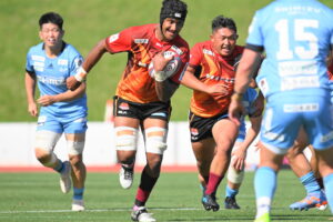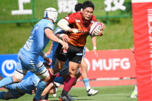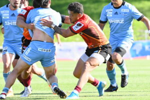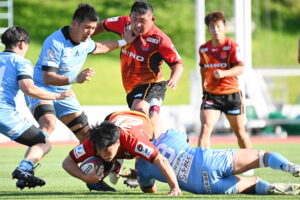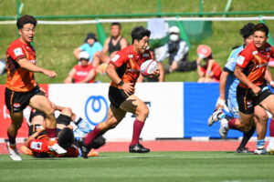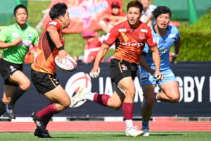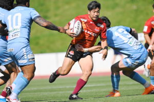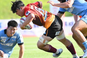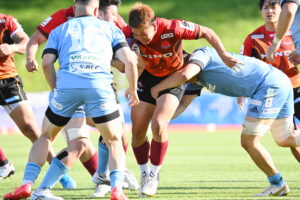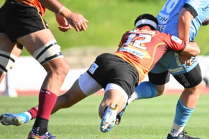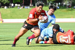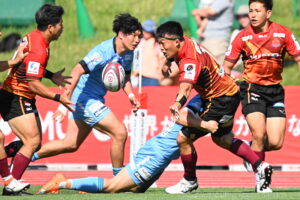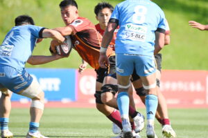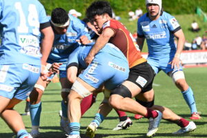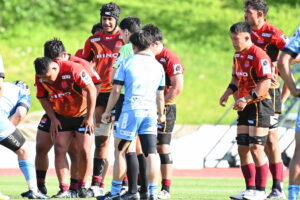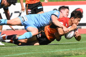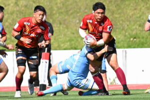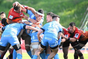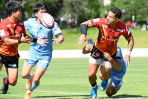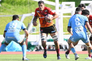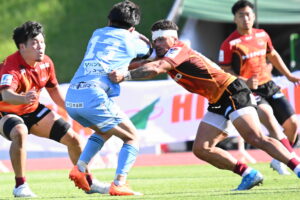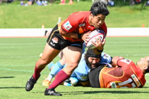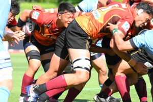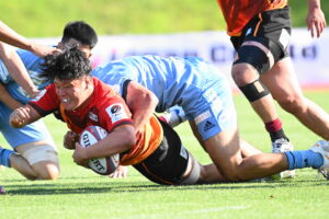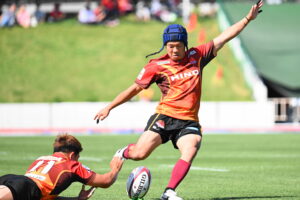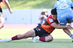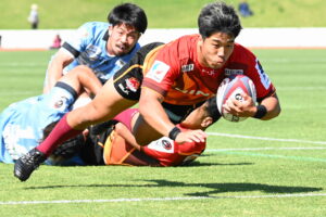 後半、江東の勢いを止めたい日野。しかしながら緊張の糸が切れたか。攻守共にかみ合わず追加点を挙げることができず、4分に江東にペナルティからの連続攻撃でトライを許すと21分もペナルティからトライを許し、26分33分にもトライを許し、後半は連続4トライと江東の勢いを止めることができずノーサイド(後半0-24)。