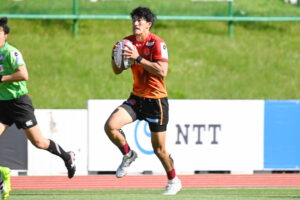 25分、日野、ゴール前左、スクラムから⑨橋本⑮高野と繋ぎトライ!5点G成功!2点