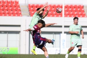 スタートダッシュに失敗!格上の花園に主導権を握られた。キックオフから10分間で花園に2連続トライを許した。そのまま花園に完全支配されそうな入りであったが日野プライドを見せた。