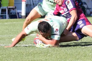 40分、日野、ゴール前右、ラインアウトからモールサイドを⑯玉木が突き㉑畑田⑩ヒッキー⑫アロフィポと繋ぎトライ!5点G失敗成功2点(34-47)