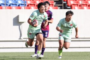 10分、日野、ゴール前左、ラインアウトからモールを押し込み①徳田がトライ!5点G失敗(5-14)
