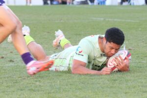 25分、花園、中盤左、相手キックボールをカウンター攻撃、ラックから⑨⑧⑤⑪と繋ぎトライ!5点G成功2点(5-21)