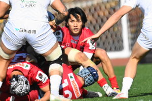 29分、日野、10m左、ラインアウトモールから展開して連続攻撃、ラックから⑨篭島②谷口⑧フェナー㉒コスターと繋ぎトライ!5点G成功2点(14-21)
