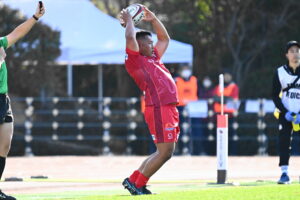 6分、江東、22m右、ラインアウトから展開⑨⑫突破&ラック⑨⑩⑦と繋ぎトライ!5点G成功2点(7-21)